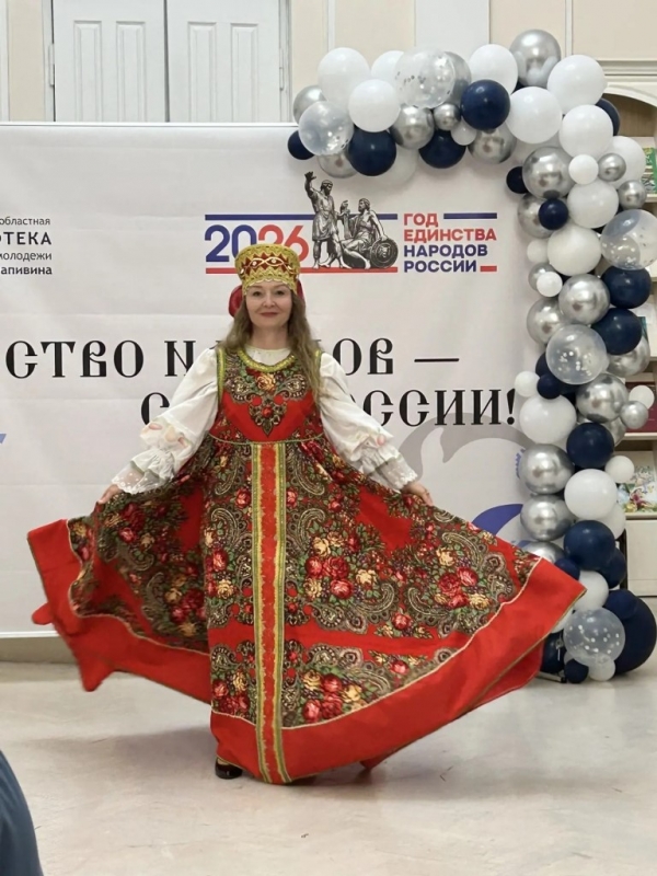 Кульминацией «Библионочи-2026» в Крапивинке стало красочное дефиле костюмов народов России «В ритме народных узоров». Публике были представлены: башкирский, казахский, чувашский, удмуртский, татарский, узбекский, русский, белорусский, казачий и марийский костюмы. Зрители совершили удивительное путешествие по страницам истории и культуры нашей страны. В коллекции каждого этноса были собраны самые яркие, самобытные и неповторимые образы, созданные руками мастеров и хранящие тепло народных традиций. Это был настоящий парад красоты, таланта и национального колорита!