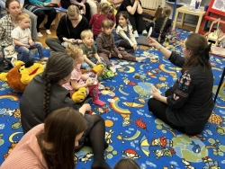 В Зале детского чтения нон-стопом шли представления в настольном театре и игровые программы для самых маленьких читателей Крапивинки. Дети с удовольствием наблюдали за событиями сказок «Репка», «Красная Шапочка» и «Три поросёнка». Во время игровой программы малыши знакомились, играли в пальчиковые игры, одевали и раздевали репку, собирали пазлы и даже побывали в образе волка из «Трёх поросят».
