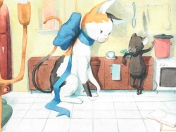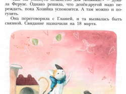 Ферузе – настоящая домашняя кошка. «Домашняя и трёхцветная, а это означало, что само её присутствие приносило в дом счастье и не требовало никаких иных жертв или усилий с её стороны». Ферузе очень любила свою хозяйку, а особенно когда та читала книги. И вот однажды после завтрака домашняя кошка решила исследовать окрестности квартиры. Она была удивлена, обнаружив за мусорным ведром отверстие, Ферузе расширила проход и юркнула в новое пространство. Перед ней предстала уникальная картина – читающая мышь. Да-да! Самая настоящая читающая мышь! Но как отреагировала мышь на столь неожиданное появление кошки? Она отложила книгу в сторону и отправилась на свою маленькую кухню разогревать обед.