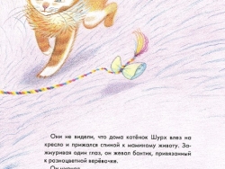 Котёнок жил с мамой Мурчей и больше всего на свете любил её. А мама больше всего на свете любила Шурха. Однажды Шурх во время прогулки увидел на дереве красивый бантик и решил во что бы то ни стало принести его маме в подарок. Но как? Бантик висит высоко на дереве, а Шурх такой маленький! Но Шурх был смелым котёнком и храбро начал карабкаться вверх.
