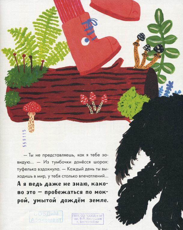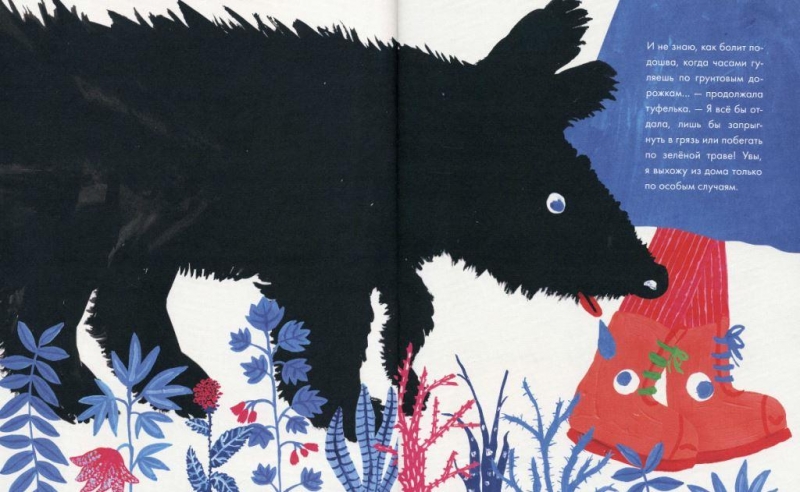 И вот тут возникает философский вопрос – что лучше? Сидеть дома, как маленькие изящные туфельки для особых случаев и быть всегда чистенькими, или наслаждаться свежим воздухом, бегать по траве или по лужам и быть чумазыми? Анна Пашкевич умудрилась изложить всё это в забавной сказочной истории про ботинки.