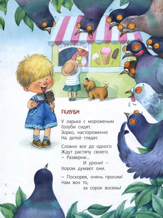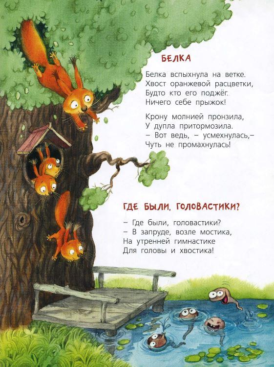 В этой книге можно найти не только весёлые стихи про разных животных и насекомых, но и попробовать вместе с ребёнком отгадать стихи-загадки, например, про одну особу или про неведомую птицу с большими ушами, как здороваться с бульдогом и как развеселить кошку.