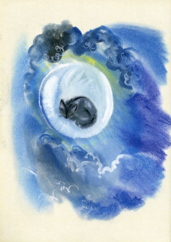 С первых мгновений книга зачаровывает своими акварельными иллюстрациями. В них можно увидеть и лунный свет, и звёздную пыль, и даже дуновения ветра. Размытые, словно туманные, полупрозрачные акварели просто волшебны и погружают в ночь, а матовая мелованная бумага, тонированная в молочный цвет, только добавляет таинственности рисункам.