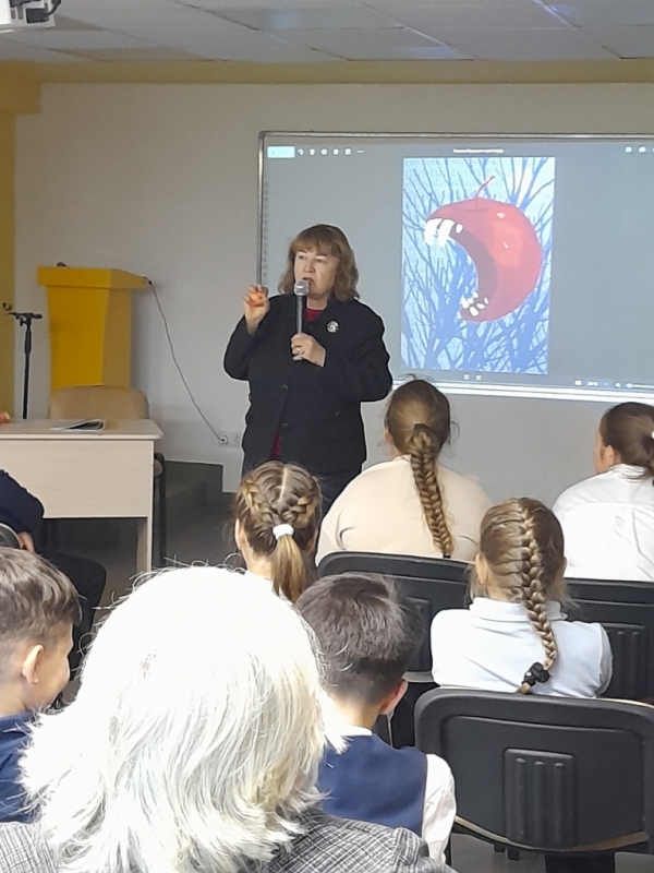 Писательница познакомила ребят с книгой, прочитав им несколько историй. Даже страшные рассказы про вампирские яблоки у Натальи Матвеевны получаются смешными. Детям очень понравилось совместное прочтение рассказа «Нет!»: теперь они знают, как при помощи него можно перехитрить упрямого собеседника. Но больше всего детям и взрослым понравился мультфильм «Когда завелась невесомость», снятый Кинокомпанией СНЕГА, сценарий к которому Наталья Матвеевна написала по рассказу «Когда приедет мама».