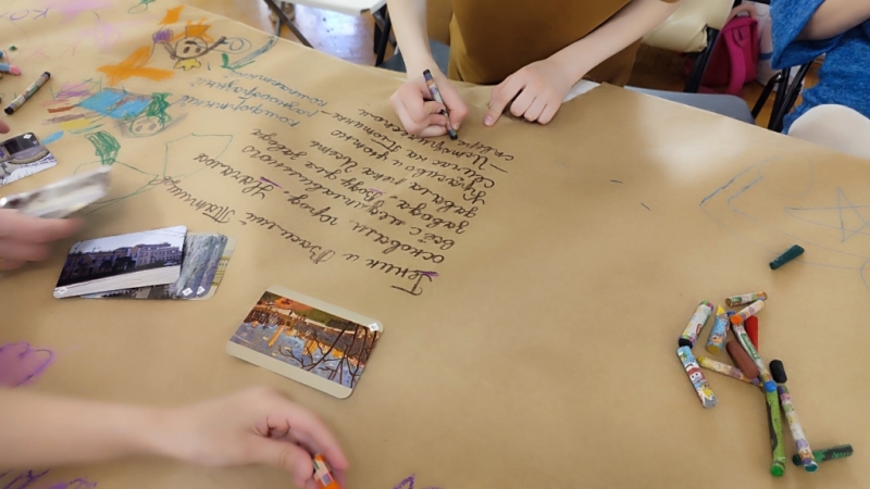 На первом занятии участники с большим воодушевлением переворачивали карточки «Мемо. Екатеринбург» и называли достопримечательности, объединённые общим смыслом «Сердце Екатеринбурга», а затем с помощью литературных игр «Ассоциация» и «Цитата» на огромном листе ватмана появлялись первые слова и тексты об образе города. Читатели также узнали, почему здание нашей библиотеки является архитектурным памятником, мысленно прошлись по любимой Плотинке, посмотрев видеосюжет, и познакомились с особенностями конструкции здания Екатеринбургского музея изобразительных искусств.
