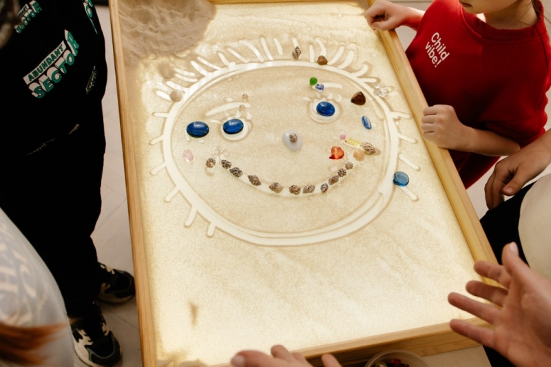 Четыре волшебных часа дети провели с опытным педагогом-психологом Александрой Владимировной Заболовской. Вместе с ней ребята отправились в путешествие, где с помощью песочной терапии учились обращаться к своим потребностям, формулировать мечты и жизненные цели, знакомиться и находить новых друзей, договариваться друг с другом.