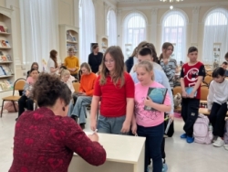 А ещё в библиотеке прошла увлекательная поэтическая игра «Весёлые посиделки с Агнией Барто», которая собрала семейную аудиторию в Малом зале. Дети с удовольствием вспоминали героев произведений, отвечали на вопросы викторины и отгадывали стихотворения. Затем юных участников ждал творческий мастер-класс: при помощи трафаретов они создавали яркие иллюстраций к произведениям Агнии Барто про косолапого мишку, плачущую Таню и зайку, который остался под дождём.