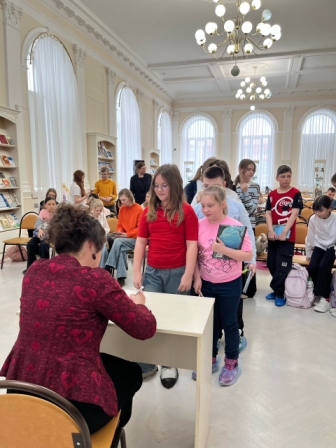 Татьяна Владимировна рассказала читателям о том, как она стала писателем, как происходит для неё работа над рукописью, откуда берётся вдохновение, и над какой книгой она трудится в данный момент. Ребята задавали много вопросов, а потом выстроились в очередь, чтобы сфотографироваться с автором и получить её автограф. Уральская писательница передала в дар Крапивинке несколько своих книг.