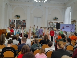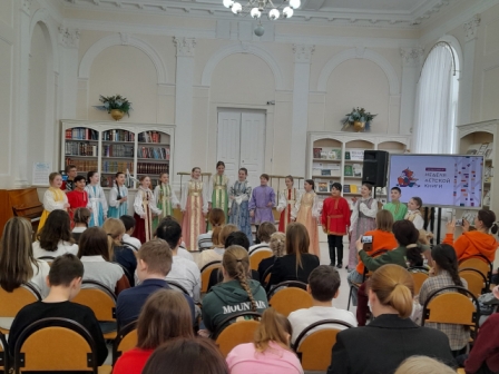 В 2026 году Всероссийская неделя детской книги приурочена к Году единства народов России. В праздничной концертной программе приняли участие воспитанники Детской музыкальной школы №11 им. М.А. Балакирева Максим Барсуков (преподаватель – Карачурина Р.Ш., концертмейстер – Старкова П.В.) и Образцовый детский фольклорный ансамбль «Соловушки» (младшая группа) (руководители – Вольхина Е.Г., Аптекарь А.В., Мусальникова Т.В., Дмитриева Н.С., концертмейстер – Токарев М.А.). Отличительной чертой коллектива является исполнение аутентичного фольклора, исконных песен, собранных во время фольклорно-этнографических экспедиций по сёлам и деревням нашей области. Красиво и лирично звучала русская народная песня «Как пойду я на быструю речку» в исполнении Максима Барсукова, а «Соловушки» зажгли зал задорными плясовыми песнями Свердловской области.